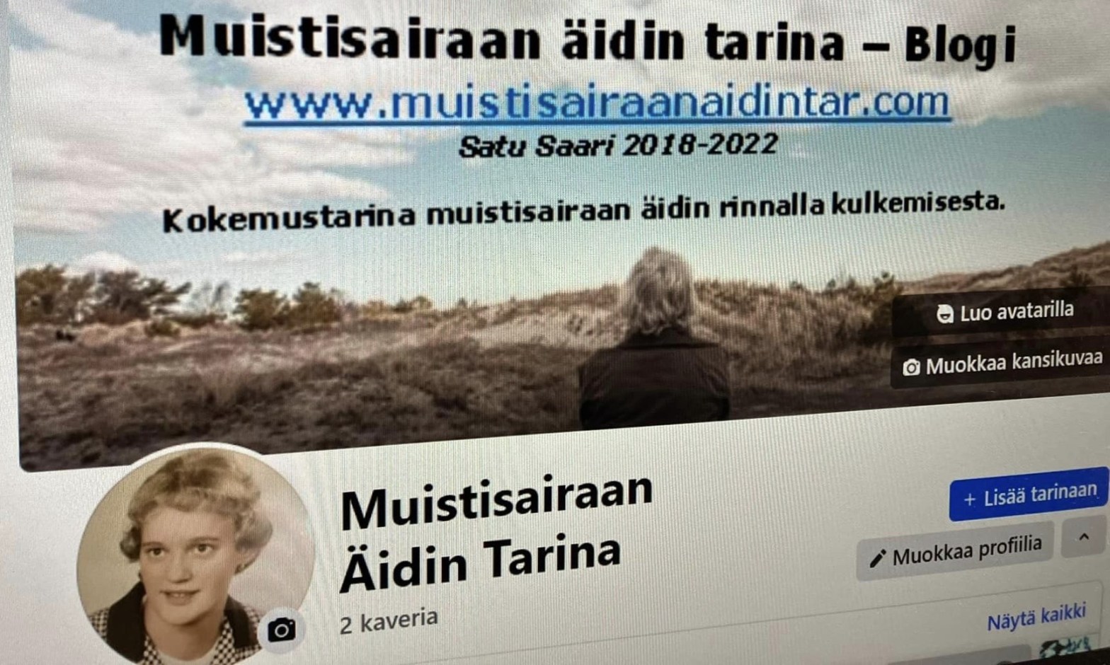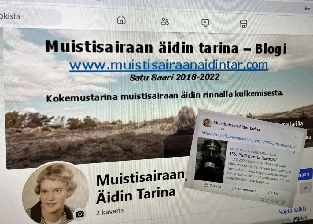 Muistisairaan äidin tarina – Facebook sivut valmistuivat myös eilen. Tallensin sinne nyt kaikki rapiat 160 artikkelia, jotka olen kirjoittanut. Nyt sieltä voi siis jakaa yksittäisiä artikkeleita. Etsi Facebookista Muistisairaan Äidin Tarina – sivut!